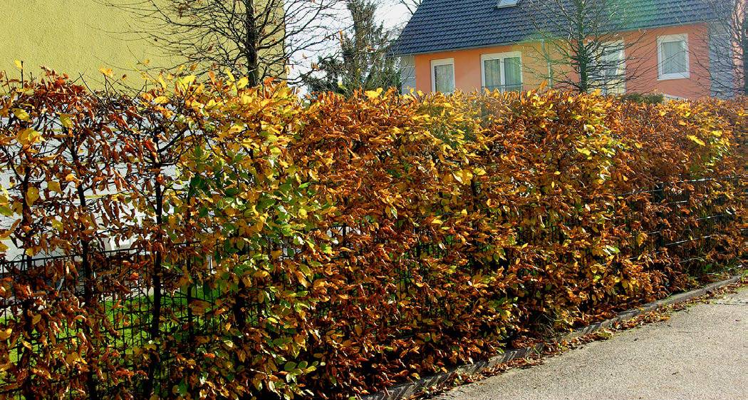 Die Hainbuche wurde auch Hagelbuche genannt, weil sie als Hecke zum „Einhagen“ von Feldern und Wiesen verwendet wurde. Auch heute ist die Hainbuche als Heckenpflanze sehr beliebt. Das hat mehrere Gründe: Die Heckenpflanzen haben einen günstigen Preis, lassen sich sehr gut schneiden, zeigen eine tolle Herbstfärbung, behalten im Winter lange das Laub (Abbildung 15) und sind zudem als Brutplatz bei unseren Vögeln sehr beliebt.