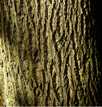 Im Winter ist die Kronenstruktur besonders gut zu sehen, selbst dann, wenn die Früchte noch an den Zweigen hängen (Abbildung 15). Der Rinde der Linde ist in der Jugend dunkelgrau mit hellen Punkten; dabei handelt es sich um sogenannte Korkwarzen, die dem Luftaustausch dienen. Mit zunehmendem Alter reißt die Rinde auf und es bildet sich die Borke, die bei der Winterlinde längs gefurcht ist, wodurch eine dicht gerippte Oberfläche entsteht (Abbildung 16). Die Farbe schwankt von bräunlich bis grau. Zuweilen ist die Borke stark mit Flechten und Algen, insbesondere an luftfeuchten Stellen, besetzt.