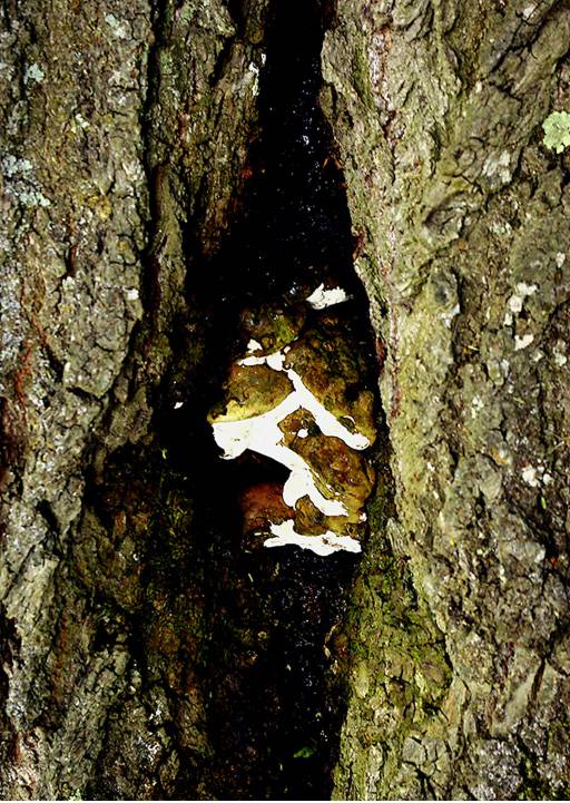 Beide Lackporling-Arten besiedeln meistens den unteren Stammbereich, den Stammfuß oder die Wurzelanläufe, seltener wachsen sie höher am Stamm. Mitunter sind die Fruchtkörper in Höhlungen innerhalb des Stammes zu finden (Abbildung 8). Sie wachsen an Laubbäumen, vorwiegend an Rotbuche, Eiche, Linde, Rosskastanie, Mehlbeere, Götterbaum. Der Flache Lackporling kommt vor allem in Buchenwäldern vor. Er ist aber wie der Wulstige Lackporling auch an verschiedenen Baumarten in Parkanlagen, Straßen und Gärten zu finden.