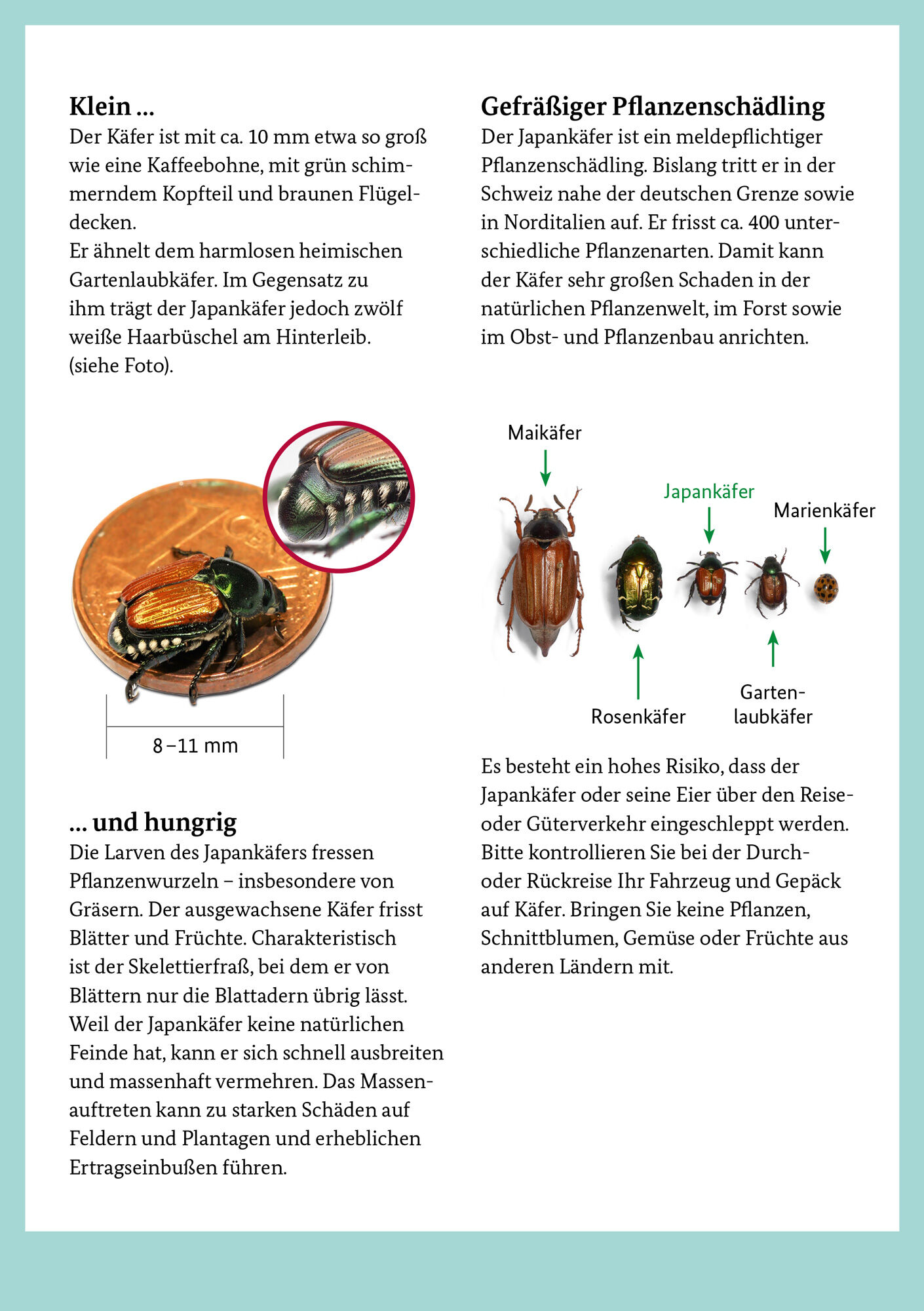 Unterstützen Sie durch aufmerksames Beobachten die Bemühungen, die Ausbreitung des Japankäfers zu unterbinden – und melden Sie etwaige Funde!