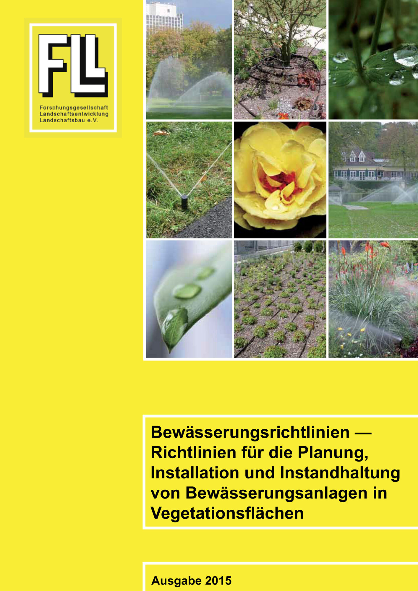 Mehr zum Thema Beregnung von Vegetationsflächen sowie Planung und Bau von Beregnungsanlagen finden Sie in der 2015 veröffentlichten ,Empfehlungen für die Planung, Installation und Instandhaltung von Bewässerungsanlagen in Vegetationsflächen‘ der FLL (Forschungsgesellschaft Landschaftsentwicklung Landschaftsbau e.V.).