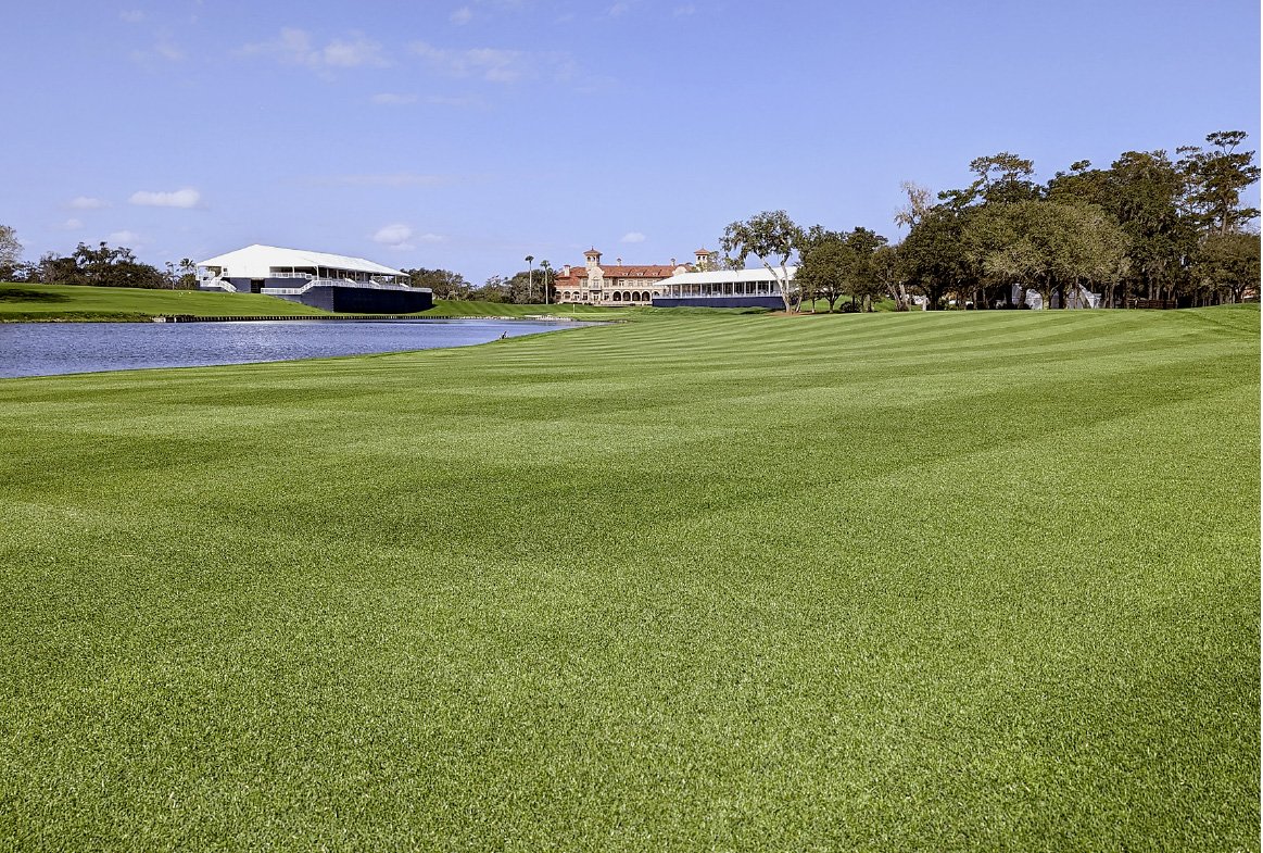 In den USA gibt es gemeinhin viele Golfplätze, bei denen die Möglichkeiten fast unendlich erscheinen. Und dann gibt es noch die TPC-Plätze, bei denen nochmal eine „Schippe draufgelegt“ wird. Einer davon ist der TPC Sawgrass Stadium Course, wo die Vorbereitungen für das Players Championship-Turnier, welches ab dem 07.03.2023 stattfand, in vollem Gange waren. Da Floratine auf dem Gelände der Anlage mehrere Versuchsfelder sowie ein Labor innerhalb der Hallen des Greenkeepings besitzt, konnte ein Update über die neuesten Forschungsergebnisse mit einer Tour über den Platz und abschließendem Besuch im Clubhaus kombiniert werden.